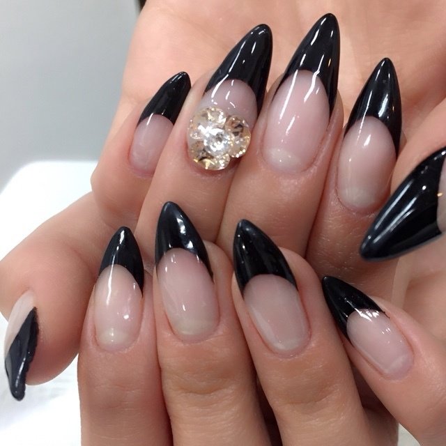 バレリーナシェイプ 黒フレンチネイル 渋谷道玄坂プライベートネイルサロンネイルモンスター
